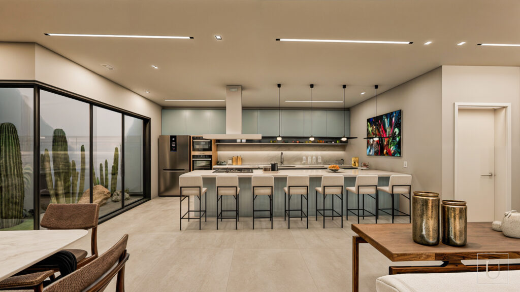 Descrição – Este projeto foi concebido para proporcionar um refúgio tranquilo, longe da correria da cidade, sem abrir mão da sofisticação. Com um design contemporâneo, a casa combina linhas retas, materiais de alta qualidade e uma paleta equilibrada entre tons neutros e quentes, criando uma atmosfera. Os espaços são amplos e bem iluminados, com grandes aberturas que integram o interior à paisagem ao redor. Elementos como madeira, pedra natural e iluminação indireta reforçam a sensação de conforto e exclusividade. O resultado é um lar perfeito para relaxar, recarregar as energias e aproveitar o melhor