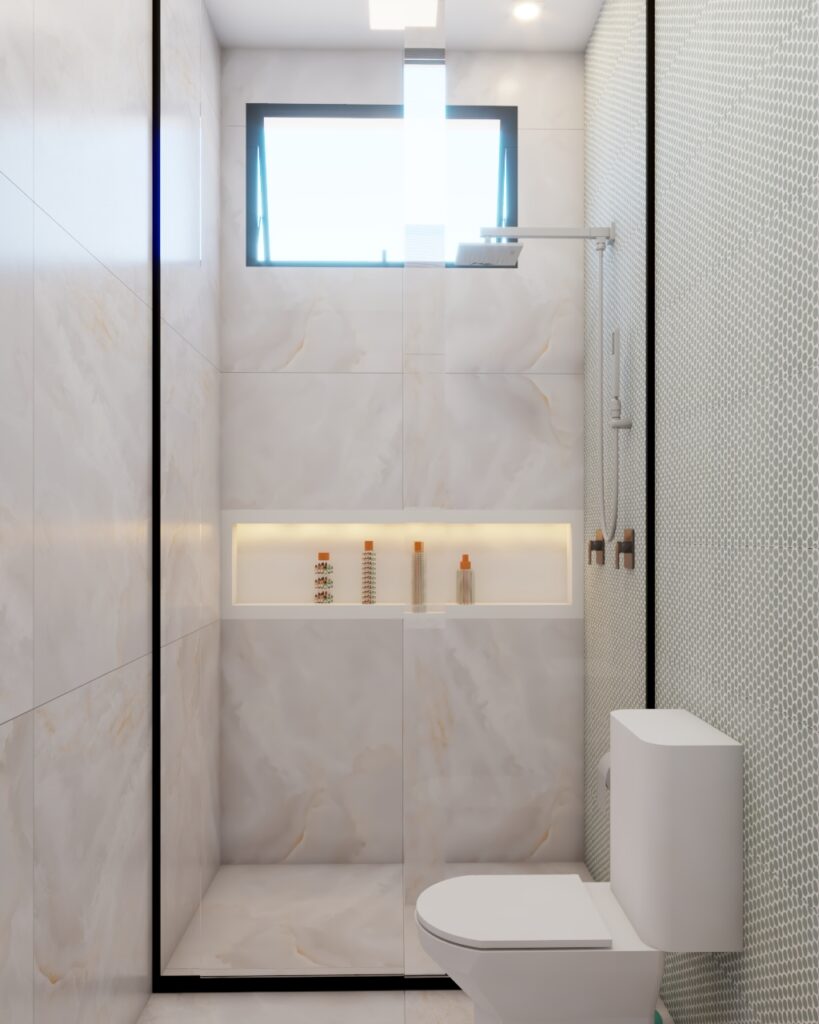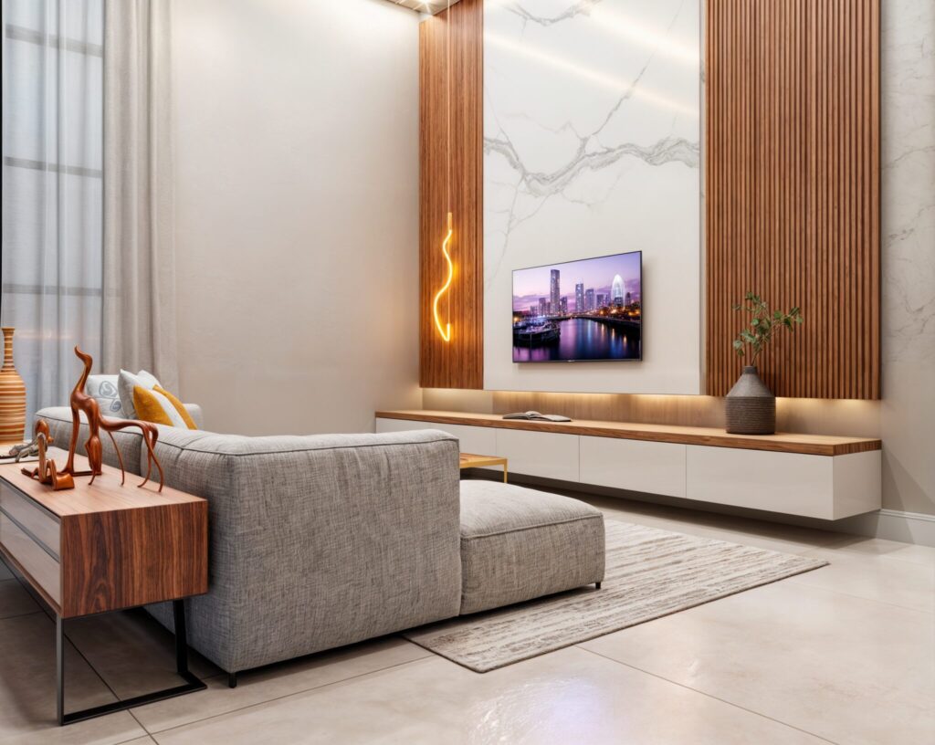Descrição – Este projeto foi criado para um jovem casal que buscava um lar moderno e acolhedor. Com linhas retas e materiais claros, a casa tem uma paleta de cores neutras, garantindo leveza e sofisticação. Os ambientes são integrados e bem iluminados, com grandes aberturas que favorecem a entrada de luz natural. Elementos contemporâneos, como brises metálicos e painéis ripados, agregam personalidade ao design. Pensada para o presente e o futuro, a residência oferece conforto, funcionalidade e soluções sustentáveis, sendo o espaço ideal para viver e formar uma família.